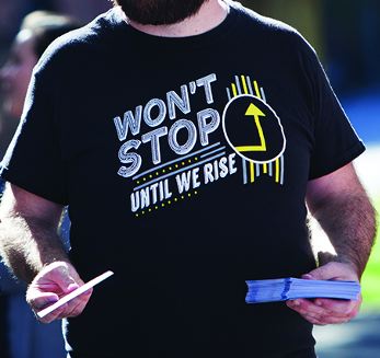 I recently came across a t-shirt design (see attached photo) that I think could be good for us with a slight modification, so that it reads "WON'T STOP UNTIL WE'RE FREE". This could be coupled with additional elements, such as the Statue of Liberty, the party name and logo, etc., on the front and/or back. I think a prominent "WON'T STOP" message printed on clothing would be popular due to suggested connotations of personal fitness, determination, endurance, etc., as well as good messaging in terms of expressing pride in long-term commitment to the LP and the cause of freedom for which we stand.