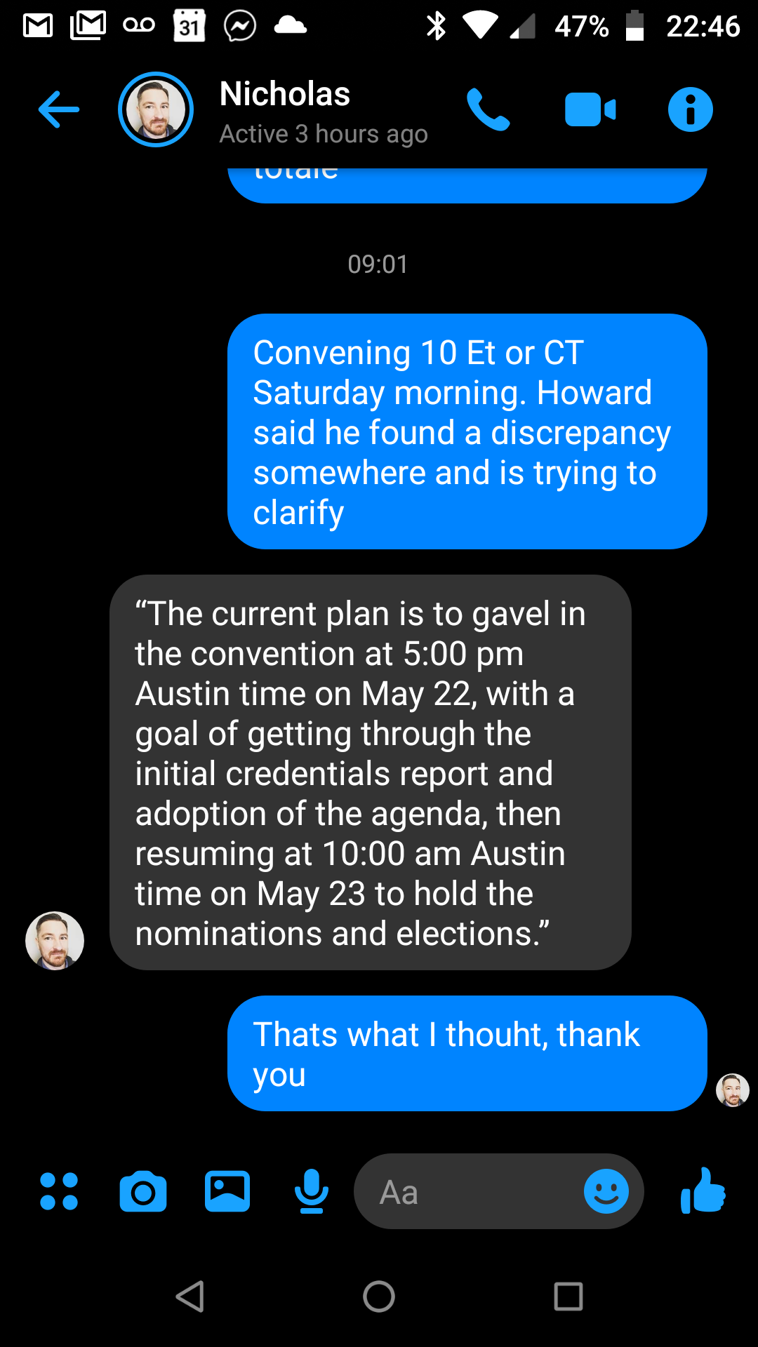 I need an official schedule to communicate and assume that there will not be any further changes at this time, pending the delegates doing what they will.
