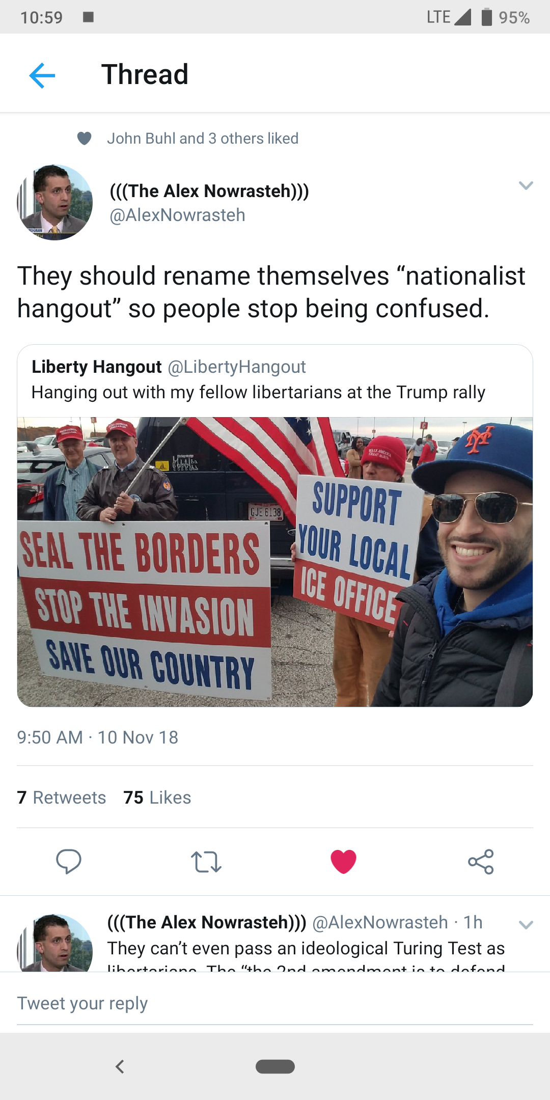 https://twitter.com/AlexNowrasteh/status/1061269953062547456?s=19 https://twitter.com/LibertyHangout/status/1059607442097606656?s=19