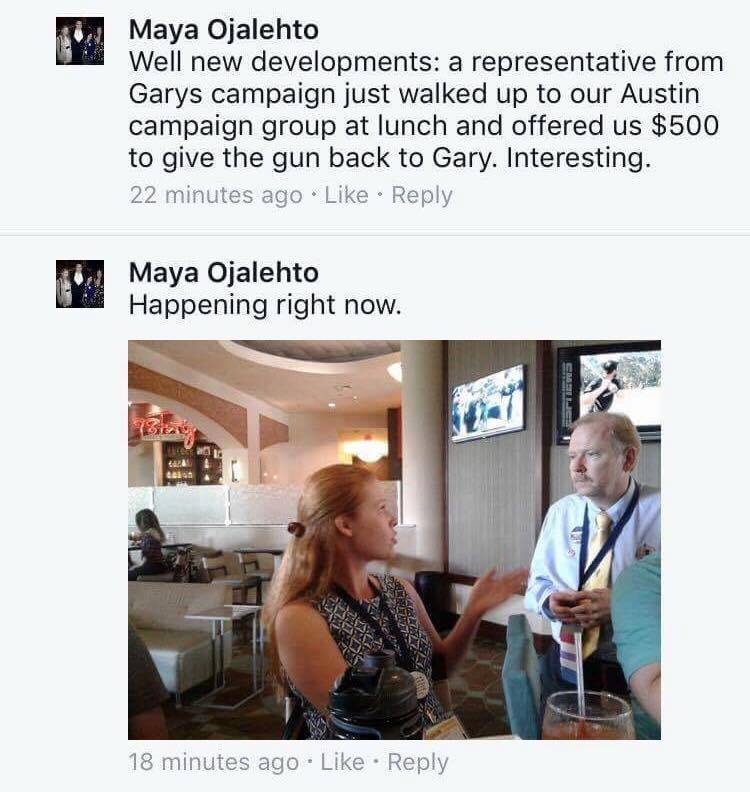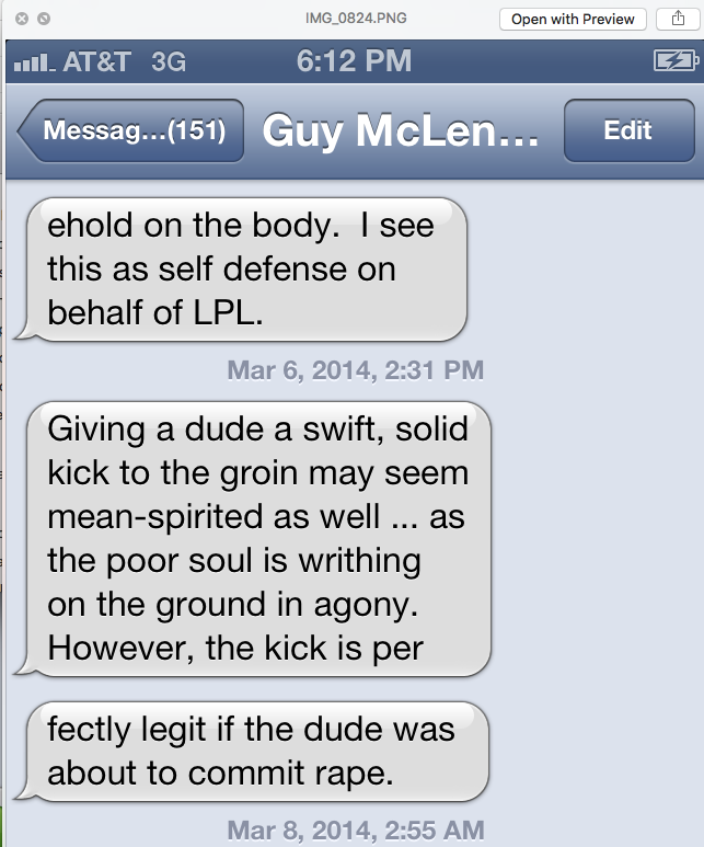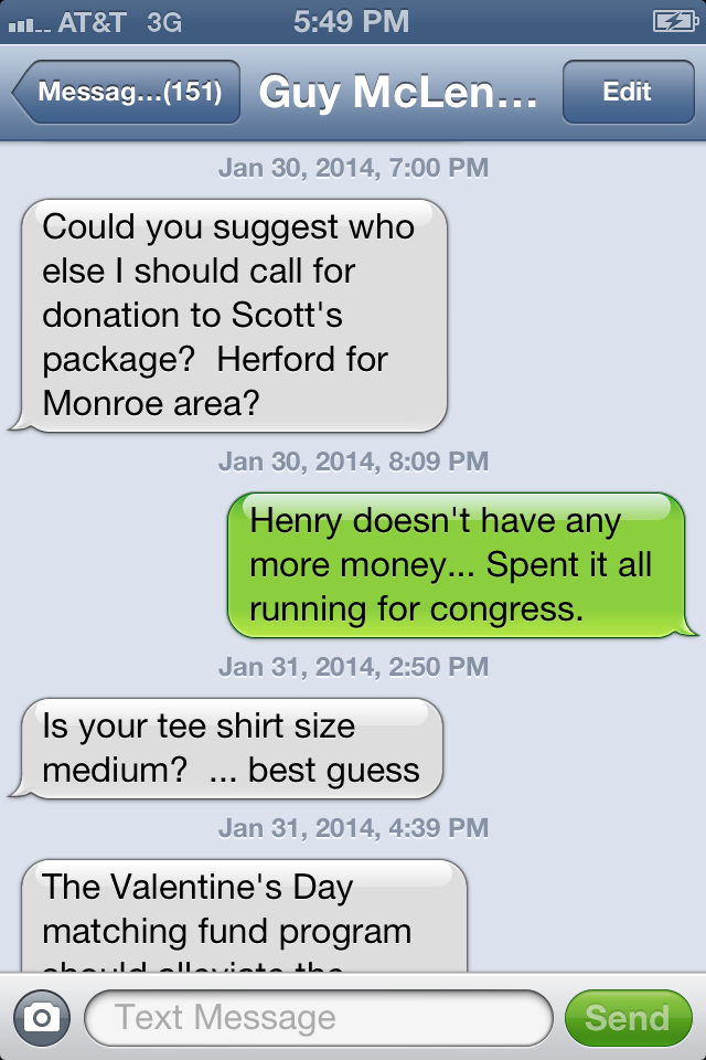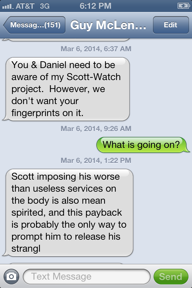 Apologies, I will address Mr McClendon’s Defense of Allegation of Buy Out. Beth Vest could be inquired of on this matter. She was one of the people that was solicited . If you simply read Mr. McClendon’s account, It sounds pretty shady, and as he mentions, in our initial conversation about this, I told him as much. Upon further reflection after hanging up the phone, as the realization that the person I supported for a position was probably the wrong choice dawned on me and I allowed myself to fully see how bad what he was suggesting was. I knew i wanted nothing to do with it and began to voice that concern to others. Mr. McClendon had been brought it because he had a long resume and we thought he was a peace maker. As this grievance which has been rejected by the LPL Judicial Committee, the LPL as a whole, the Chairman of Region 7, the previous term LNC Judicial Committee. When does this stop? Clearly, Mr. McClendon has no concept of what making peace actually means. Please pay attention to this included Screen cap of a text message with Guy McClendon and Ms. Adams. It makes reference to Scott’s package. Not money for outreach. PACKAGE. The following may be related to the package or this may be more of the stick as opposed to the carat for Guy to achieve his goal and get Scott to step down as Chair. What you have read was Mr McClendon who was brought in to help smooth things out and allow the Chairman who’s health was not great the ability to feel comfortable and resign. That security was never given because of the above demonstrated attitude. Just illustrating a pattern of a certain type of behavior below. Sorry Folks. I really wish this all had not been sent here like this like some Facebook fight. I will wait till it filters down to LNC discuss to address the rest of it . Daniel Hayes LNC At Large